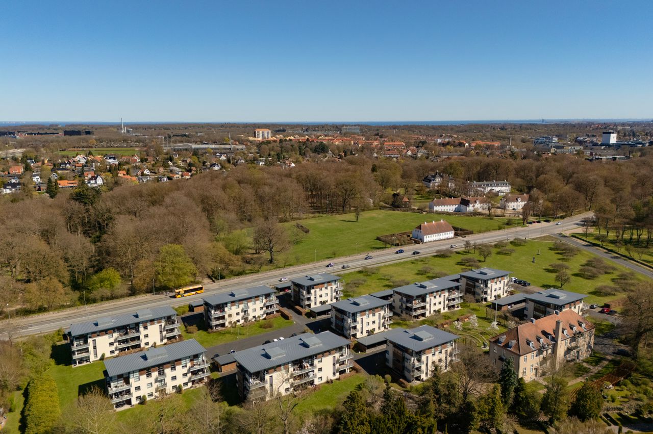 Området: Majestætisk beliggende over for Sorgenfri Slot og Slotspark mellem Lottenborg mod vest og Mølleåen mod øst. Mulighed for at nyde den skønne natur i alle retninger og så alligevel kun 1000 meter fra hele det velassorterede indkøbsmekka med Lyngby Hovedgade, Lyngby Storcenter, Magasin, Kulturhuset m.v.