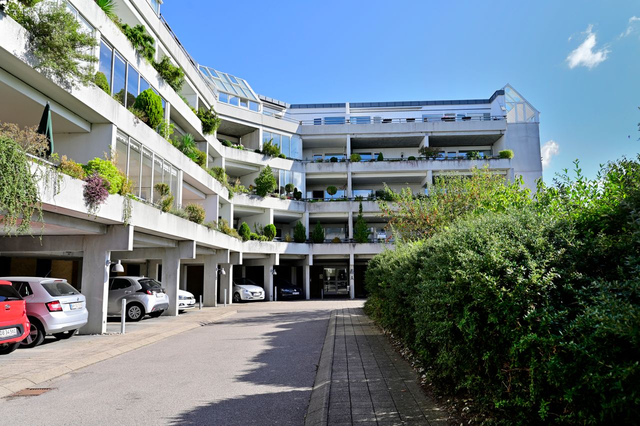 Ejendommen: Hovedejendommen er opført i 1987 og fremstår velholdt og præsentabel - bebyggelsen samler sig om et grønt område og selv om man er midt i byen, er her en fantastisk fred og ro. Overdækkede p-pladser lejes via ejerforeningen for få hundrede kr. om måneden, fine depotrum i stueplan på 9 kvm med meget let adgang for cykel og lignende. Her er aflåst opgang med porttelefon og elevator lige til lejlighedens dør.