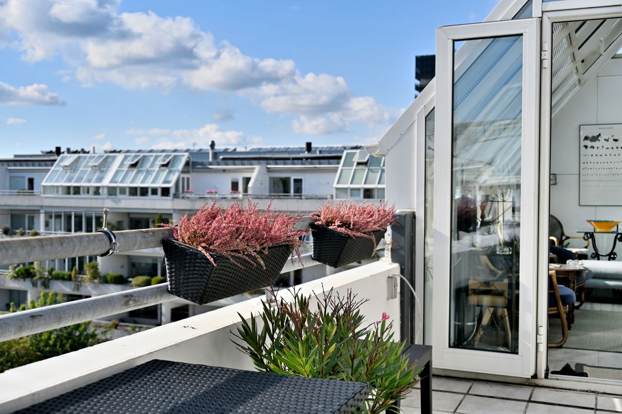 Lyngby Atriumparks bedste lejlighed - øverste oppe på vestsiden med glasatrrium - sol hele dagen - lige til solen går ned.