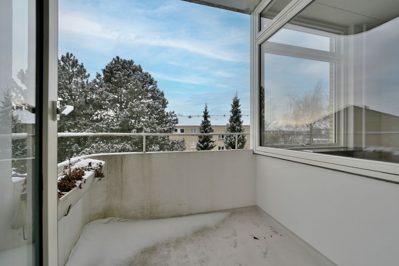 Velbeliggende 3 - værelses lejlighed på 83 kvm - solrig altan - smuk bygningsarkitektur.